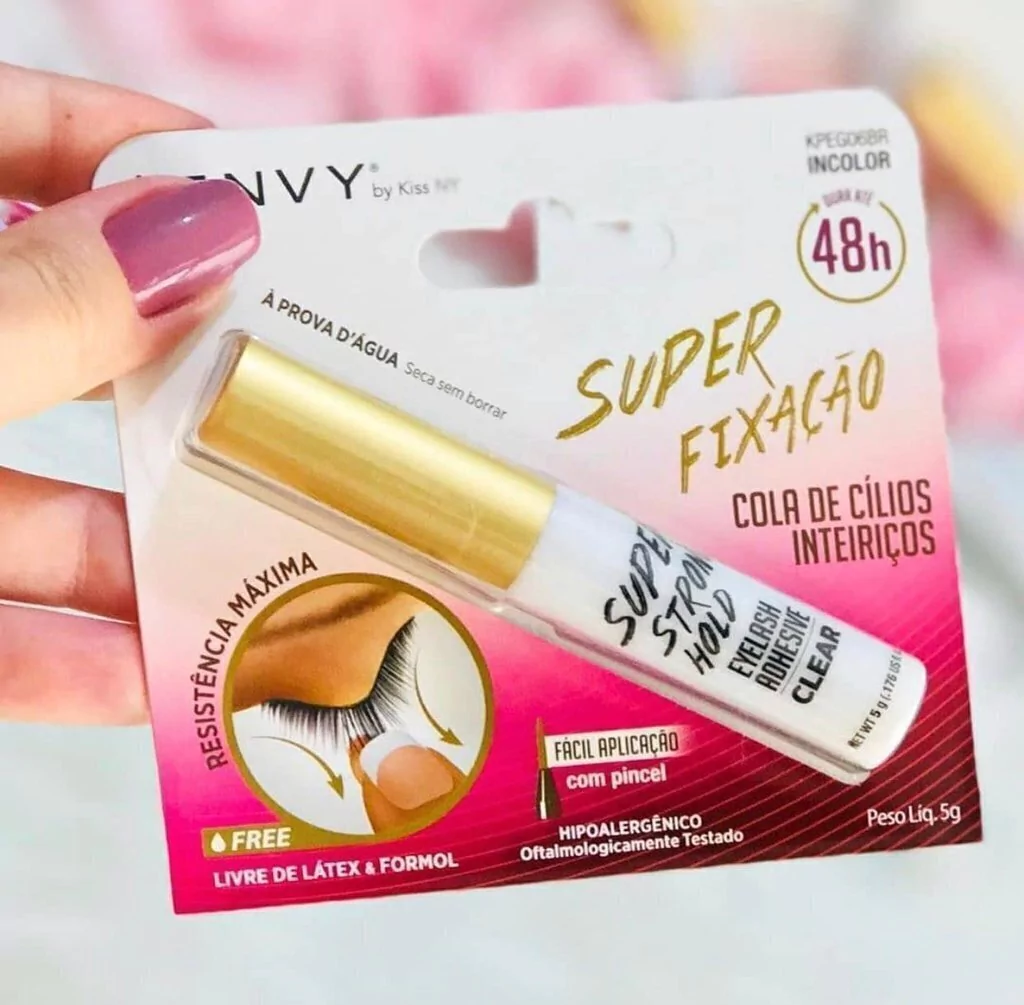 A cola para cílios 48h Incolor da I-Envy a cola é para cílios postiços, tem alta durabilidade, é à prova d’água e incolor. Seca sem borrar.