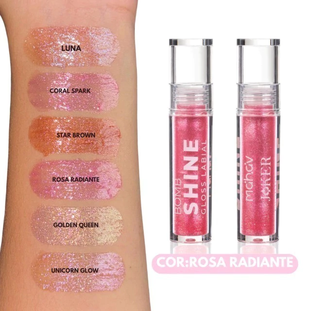 Gloss Labial cor rosa radiante Bomb Shine Joker- Mahav