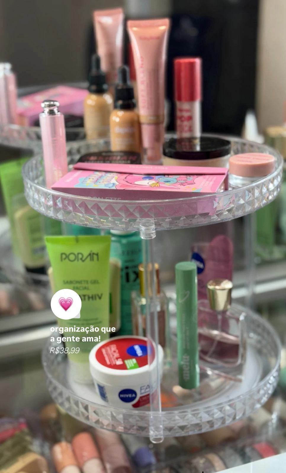 Organizador de maquiagem 5 divisórias com 2 gavetas - Cor Rosa
